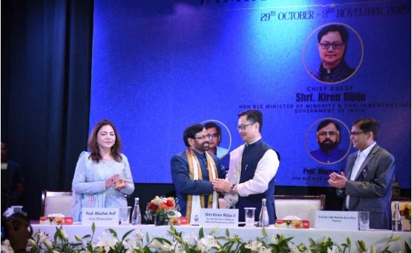 Jamia Millia Islamia (JMI) began its 105th Foundation Day celebrations with a grand inaugural ceremony held at the M.A. Ansari Auditorium. The event was inaugurated by Union Minister for Parliamentary Affairs and Minority Affairs, Kiren Rijiju, who graced the occasion as the Chief Guest, alongside Vice Chancellor Prof. Mazhar Asif, Registrar Prof. Md. Mahtab Alam Rizvi, and Dean of Students’ Welfare Prof. Neelofer Afzal.