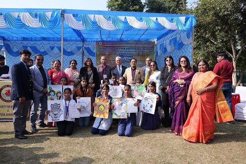 Mahamaya Girls Inter College dominated the 14th Inter-School Drawing Competition organized by the Society for Sports and Cultural Advancement at the Noida Stadium. Organized on the occasion of World Disability Day, Mahamaya students won 7 medals. The Mahamaya team was honored with the Dr. Chandrabhan Memorial Silver Coin Award for winning the most medals.