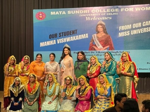 Mata Sundri College for Women, University of Delhi today organized a grand felicitation ceremony to honor their student Miss Universe India 2025, Manika Vishwakarma. Manika joined the celebrations with Nikhil Anand, the Chairman of Glamanand Group and National Director of Miss Universe India. Other dignitaries present were Governing Body members S. Kulbir Singh and S. Satnam Singh.